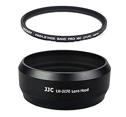 JJC LH-JX70 Metal Lens Hood replaces Fujifilm LH-X70, fits Fujifilm X70. The included adapter ring can be used to accept 49mm threaded filters and the hood allows you to put on a lens cap. The included Pro 1D Super Slim UV Filter is multi-coated.