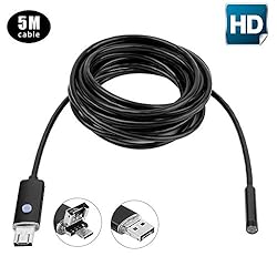 - 5M long flexible USB cable perfect to connect android phone or computers,handle knob can adjust the brightness of the camera LED lights.Appropriate for use in surveying pipes,equipments,furnishing installation,underwater viewing,parts assembly,construction
