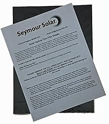 These are precut 9" X 12" sheets of Helios Solar Film that is safe for direct solar viewing. They allow only .001% of sunlight to pass through them therefore have a neutral density of 5. They can be used under magnification and are therefore safe to use with any telescope, refractor, binoculars, view finders, spotting scopes or cameras. Use it for direct viewing or to make your own eclipse viewers and solar filters. It can be used to view the sun with the naked eye. Only one layer is needed and can be cut with scissors or a sharp razor. The material is .002 thick and is very sturdy and easy to work with. A natural yellow-orange image of the sun is viewed through the film. You will be able to see sun spots, surface granulation, eclipses, and planet transits when magnified. Before looking through the film at the sun be sure there are no pinholes, scratches, or tears.