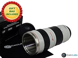 The CamLabs Camera Lens Mug is in a league of its own. It combines the sleek look of a real Canon 70-200mm F4 lens with the functionality of a thermal mug with all FDA / SGS approved material.