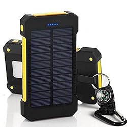 Solar Charger, SinoPro 10000mAh Solar Power Bank External Battery Pack with Dual USB Port LED Flashlight for iPhone, Samsung, Cellphones, iPad, Tablet, Camera, GPS and other USB Devices (Yellow) Check Price Now