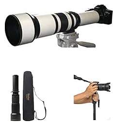 Vivitar 650-1300mm f/8-16 Telephoto Lens with) (White) Kit for Canon EOS Rebel SL1, T3, T3i, T5, T5i, 70D, 6D, 7D 5D Mark II III Cameras + 72 INCH Monopod Bundle Check Price Now